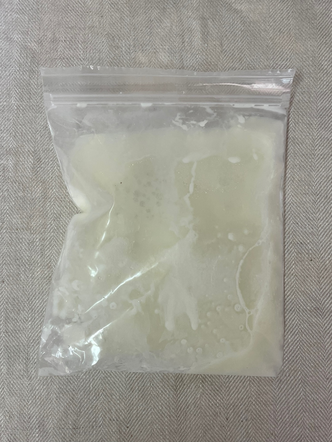 우유를 지퍼팩에 담아 냉동했어요