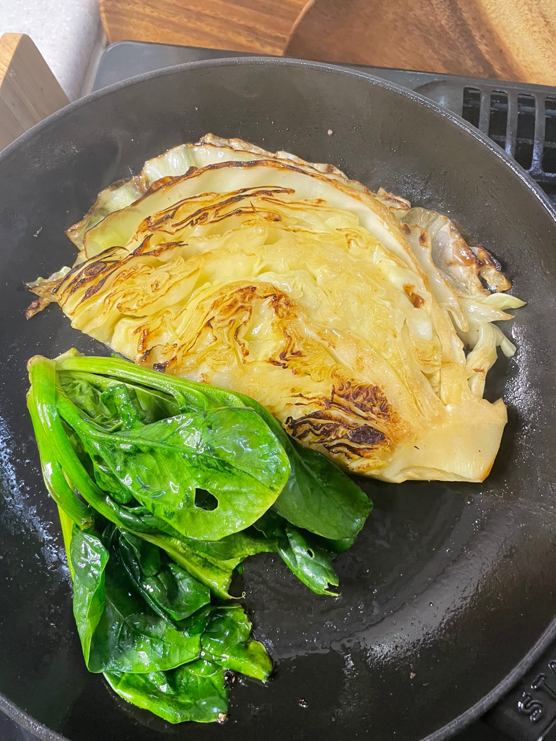 - 중약불에서 양배추 양면을 천천히 굽습니다.
