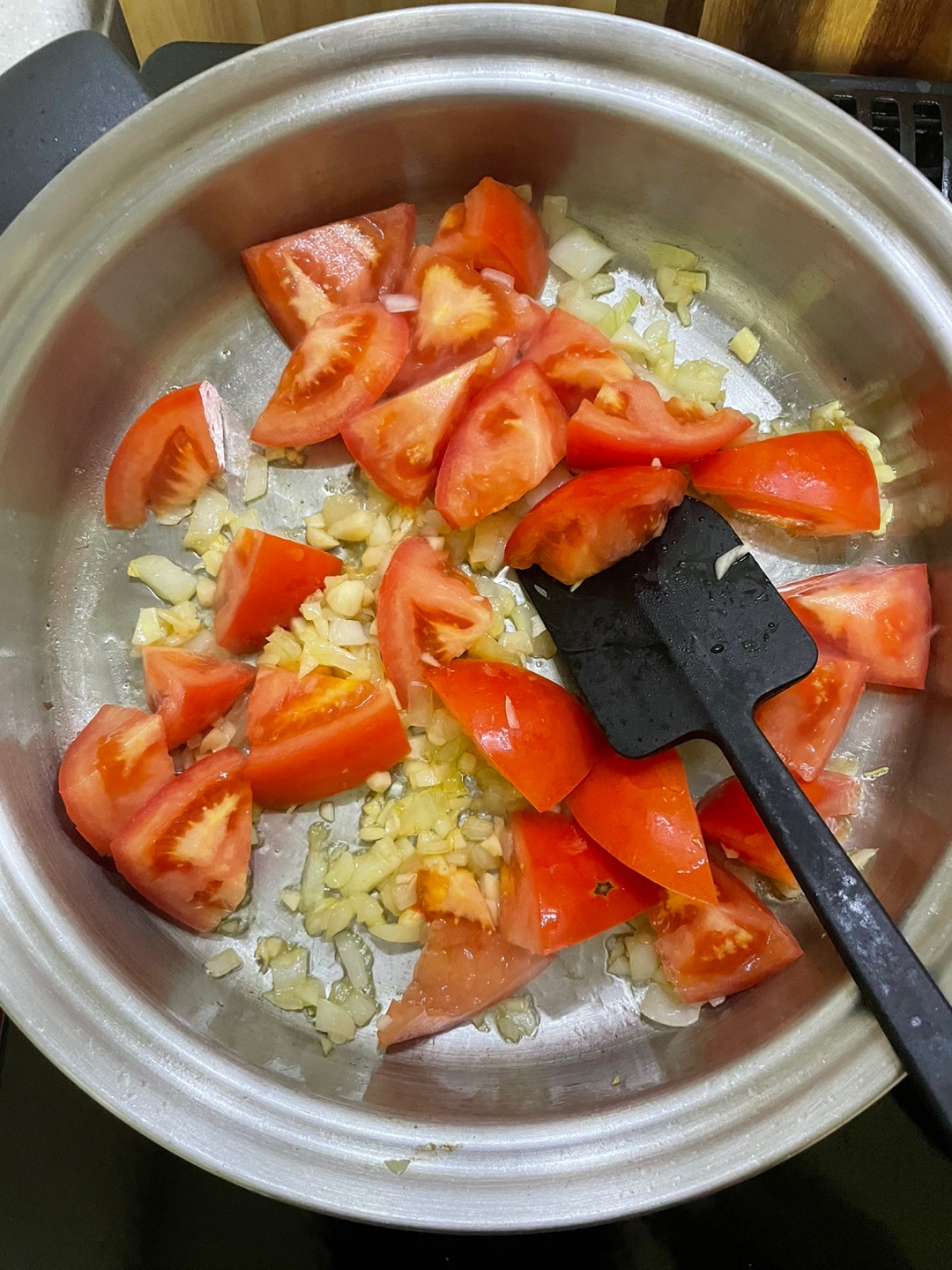 토마토 케첩이나 페스토, 또는 토마토 퓌레~ 다 좋으니 집에 있는 걸로 넣기~